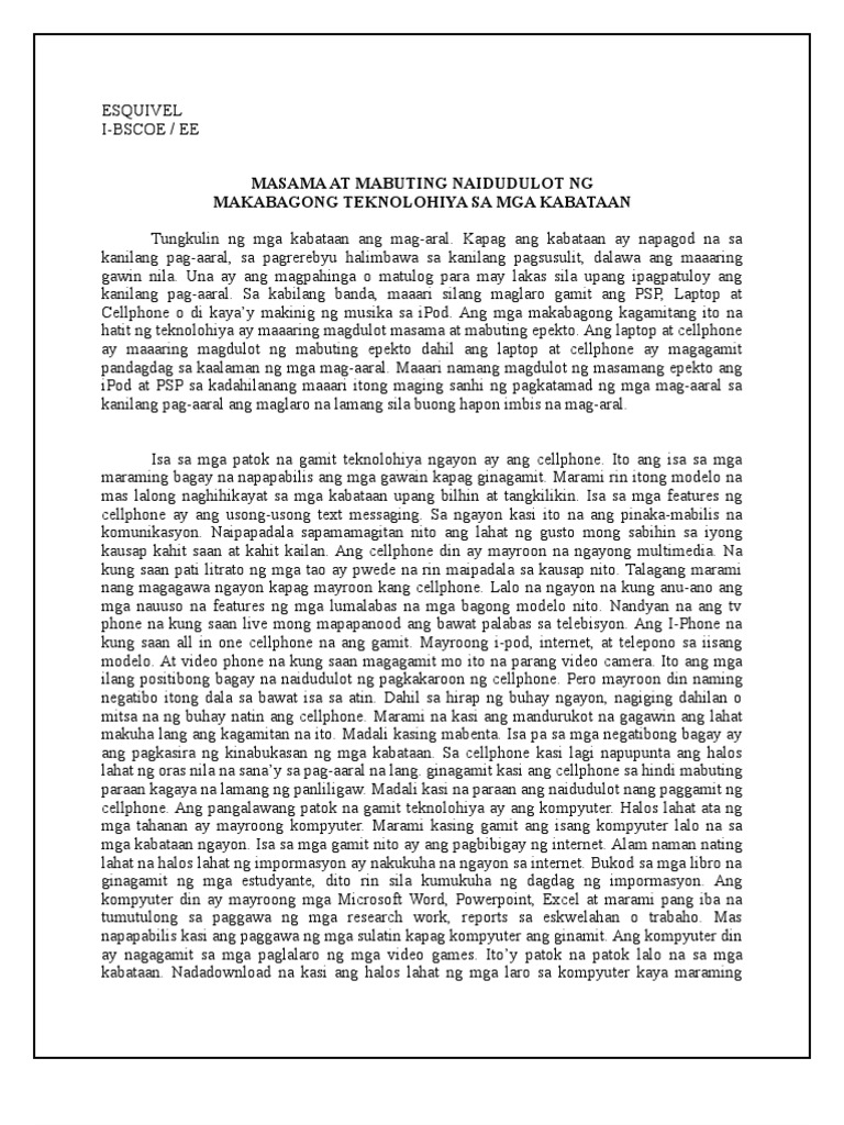 Masasabing mas mahabang oras ang inilalaan ng mga estudyante sa ngayon sa makabagong teknolohiyang ito. Essay tungkol sa epekto ng teknolohiya is a sa mga estudyante kundi sa kalidad ng edukasyon.