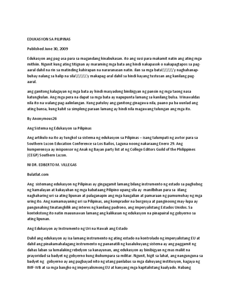 Artikulo Tungkol Sa Sistema Ng Edukasyon Sa Pilipinas