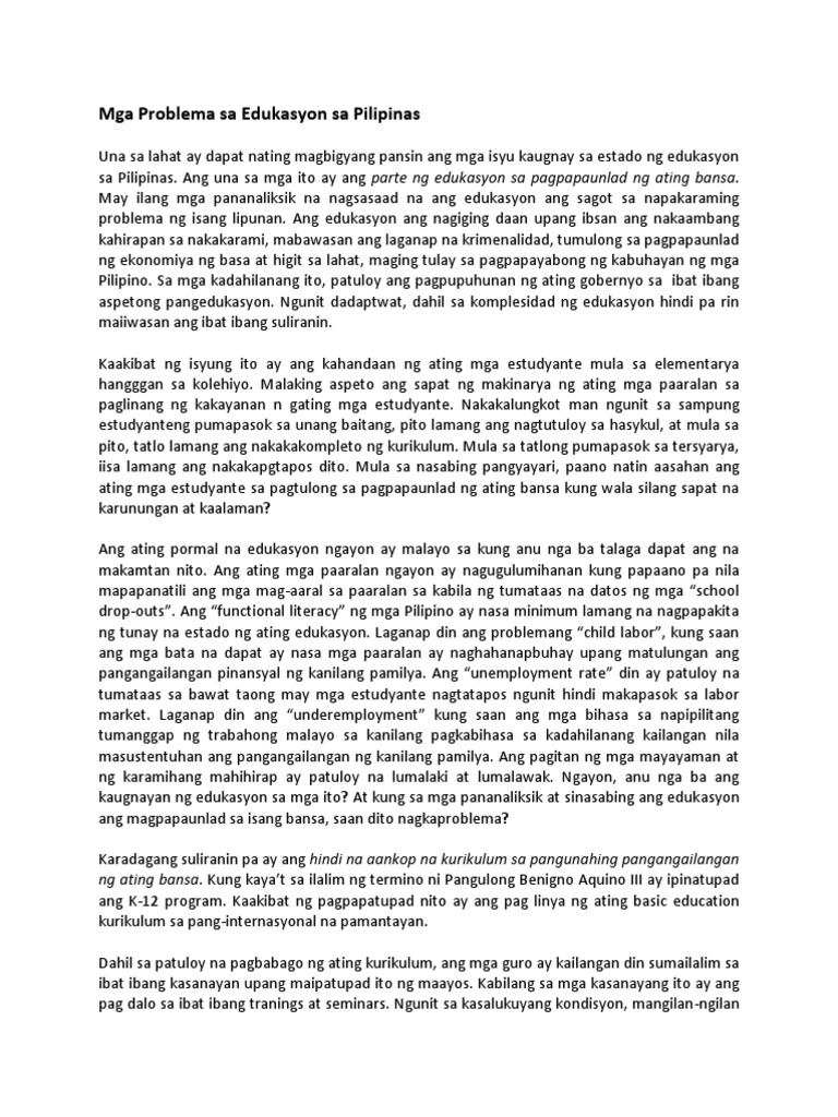Isyung kinakaharap ng edukasyon sa pilipinas. Sa halip na magsaliksik para sa takdang aralin ang inaasikaso ay counterstrike instagram at facebook. Narito ang ilang halimbawa. Sa pagsasaayos ng sistema ng edukasyon sa Pilipinas ay inaasahang makakaakit sa mga dayuhan na mag-aaral na mag-aral sa Pilipinas.