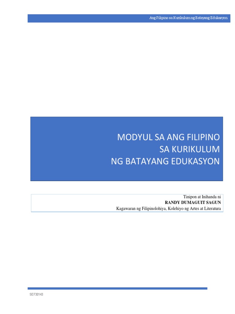 Modyul Ng Ang Filipino Sa Kurikulum Ng Batayang Edukasyon