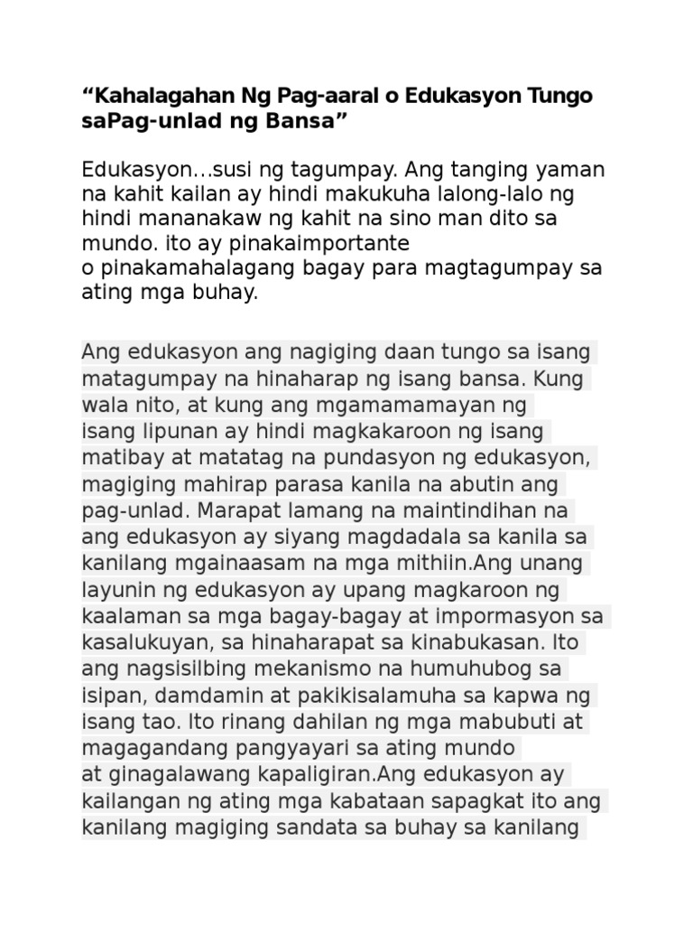 Ano Ang Kahalagahan Ng Edukasyon Essay