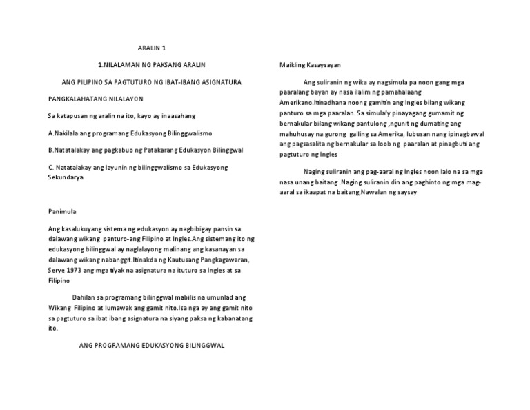 Ano Ang Layunin Ng Edukasyong Bilinggwal