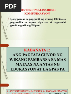 Ang Pagtataguyod Ng Wikang Pambansa Sa Mas Mataas Na Antas Ng Edukasyon At Lagpas Pa Mula Sa May Ari Nito Pptx
