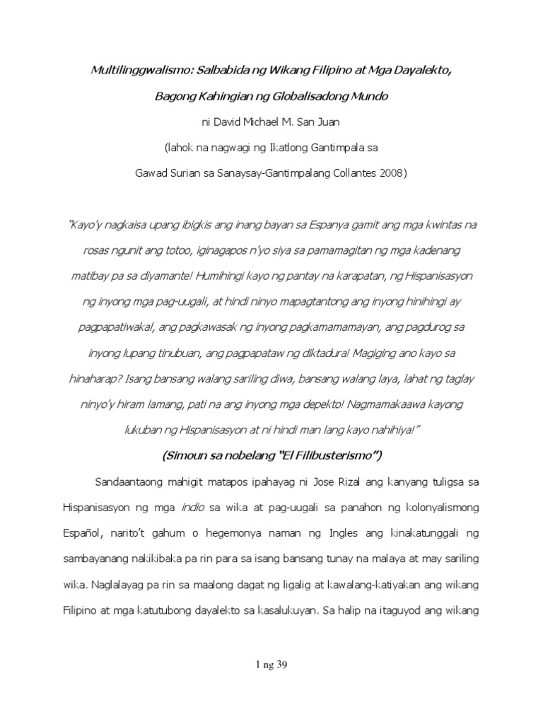 Multilinggwalismo Salbabida Ng Wikang Filipino At Mga Dayalekto Bagong Kahingian Sa Global Is A Dong