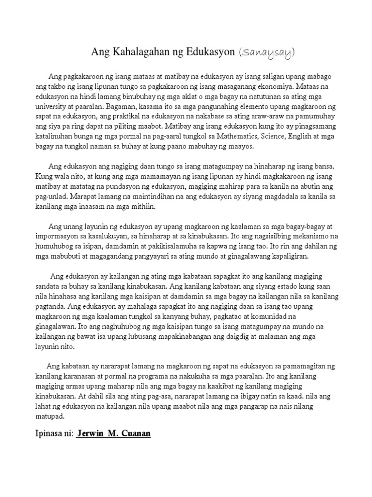 Essay Ano Ang Kahalagahan Ng Edukasyon Ang Kahalagahan Ng Edukasyon Para Sa Akin Essay