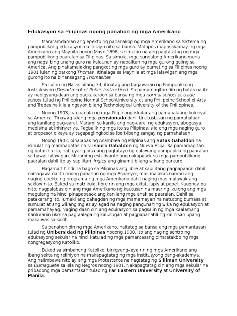 Edukasyon Sa Pilipinas Noong Panahon Ng Mga Amerikano